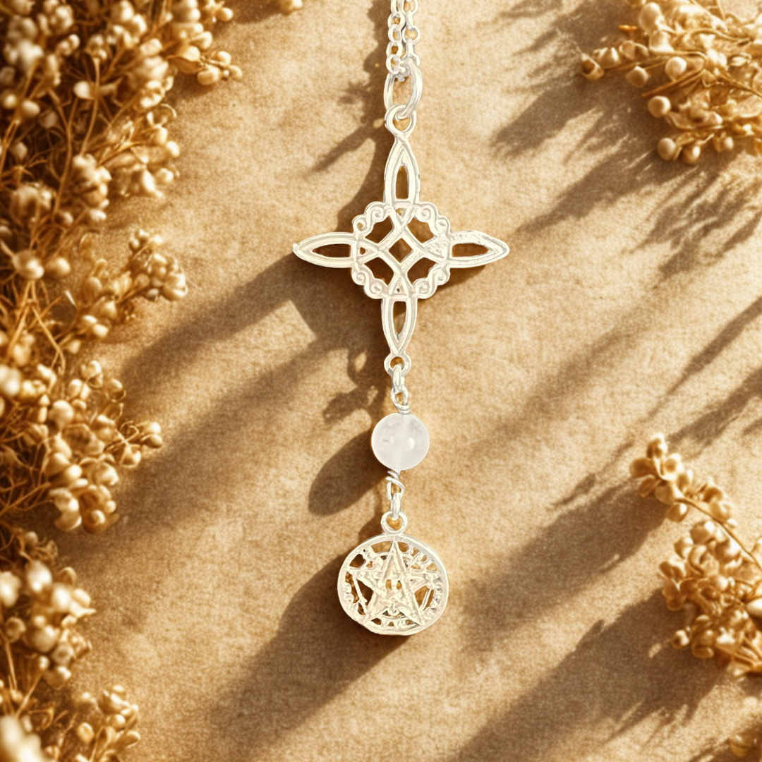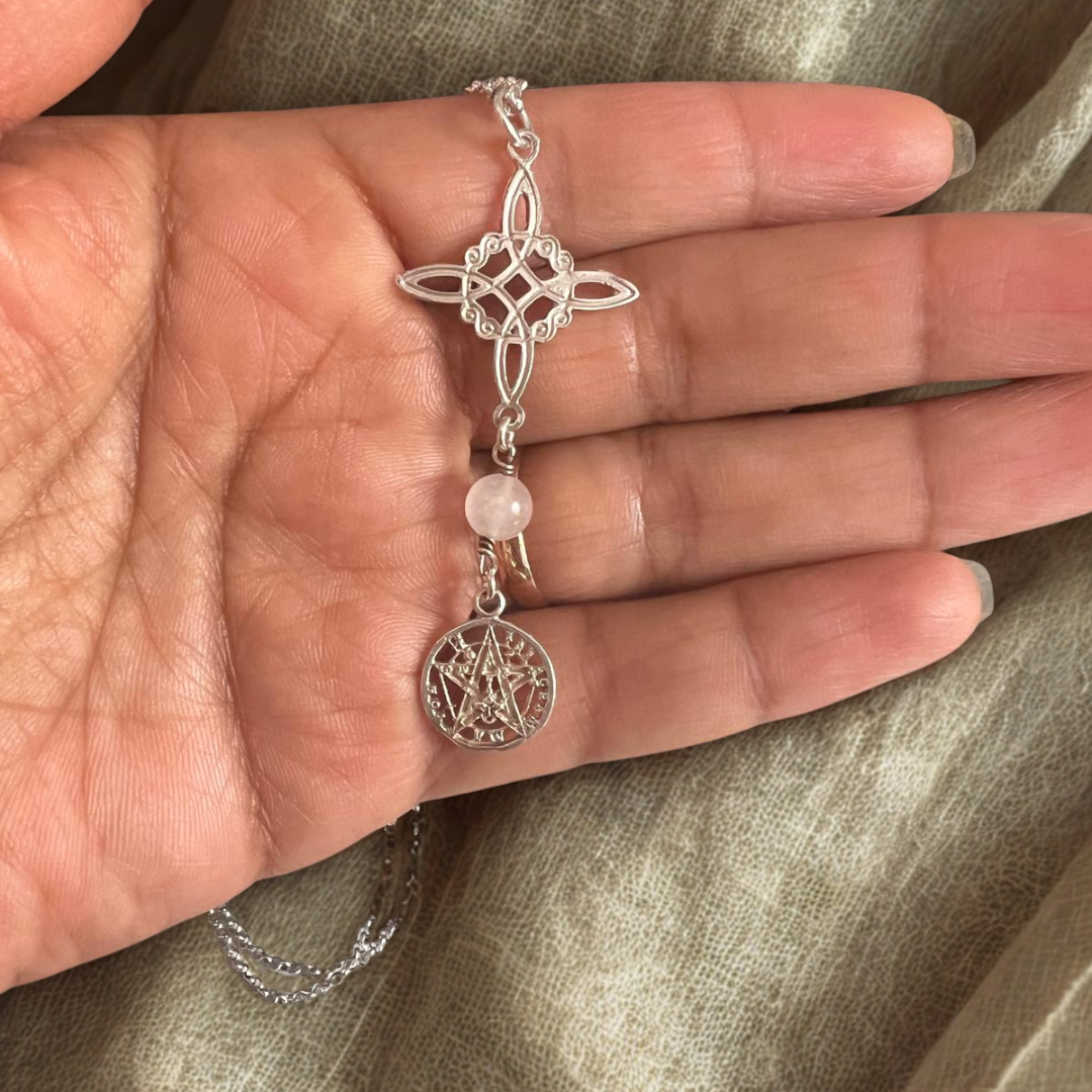 ✨ Colgante de Doble Protección – Nudo de Brujas + Tetragrámaton