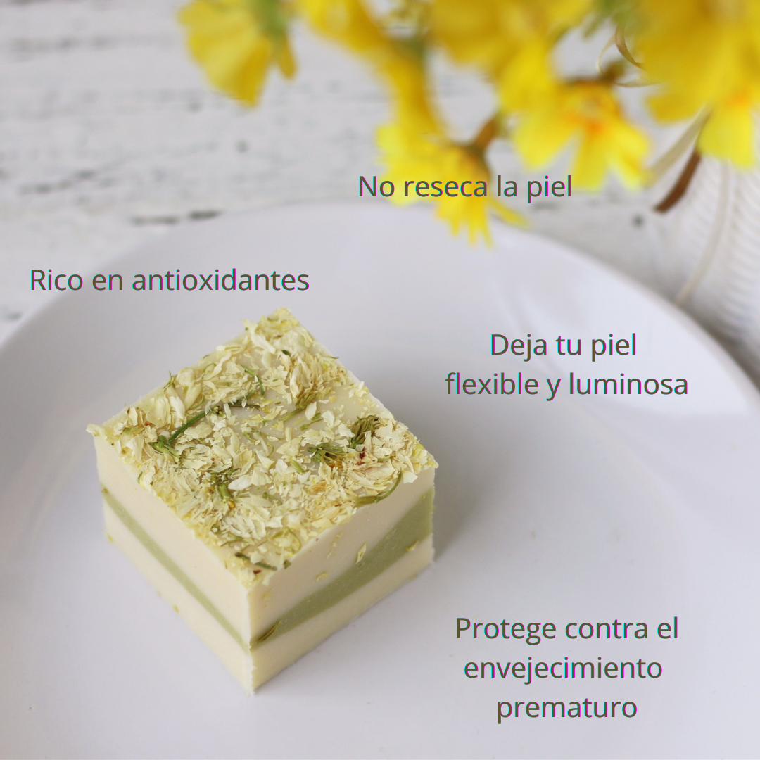 El Jabón Natural de Jazmín envuelve la piel con la delicadeza de sus pétalos, ofreciendo una limpieza suave y aromática que relaja cuerpo y mente. Rico en antioxidantes y con propiedades calmantes, hidrata profundamente y deja un aroma floral embriagador que perdura en la piel. Ideal para quienes buscan un cuidado diario con un toque sensual y elegante.