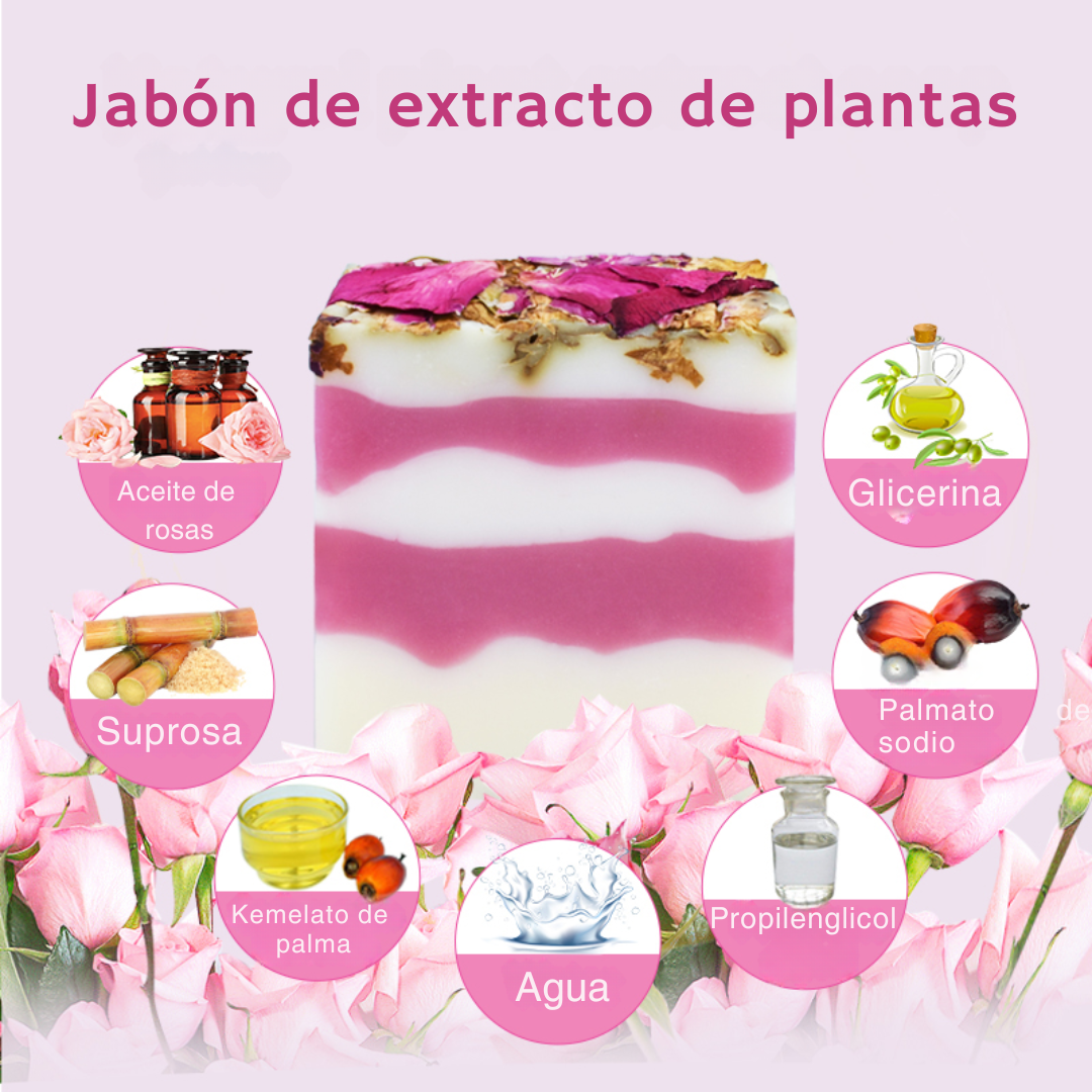 Elaborado con pétalos y extracto puro de rosas orgánicas, este jabón limpia suavemente mientras nutre y protege la piel. Su fragancia floral relaja los sentidos y su fórmula rica en antioxidantes ayuda a mantener la piel suave, hidratada y con un brillo natural. Ideal para todo tipo de piel, especialmente las sensibles o secas, brindando una experiencia de cuidado diaria digna de un spa.