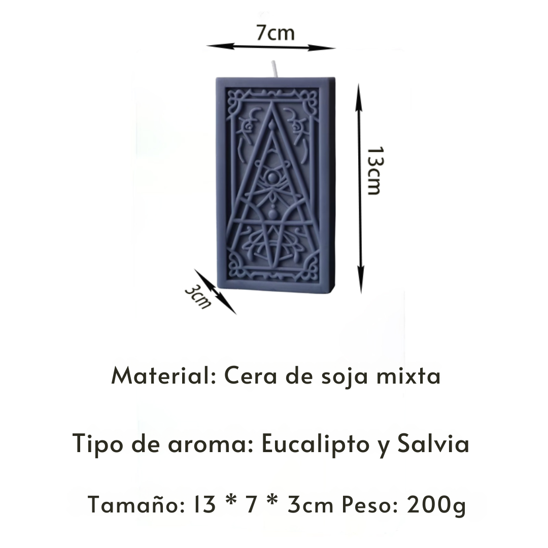 Las Velas Energía del Tarot de Eucalipto y Salvia son más que un objeto decorativo: son un ritual en sí mismas. Elaboradas artesanalmente con cera natural y esencias purificadoras, combinan el aroma fresco del eucalipto con la energía limpiadora de la salvia. Su forma inspirada en cartas del tarot las convierte en un amuleto único para meditar, proteger espacios, atraer claridad y elevar la vibración espiritual. Enciéndelas para armonizar tu hogar, acompañar lecturas de tarot o simplemente disfrutar de su fragancia envolvente y renovadora.
